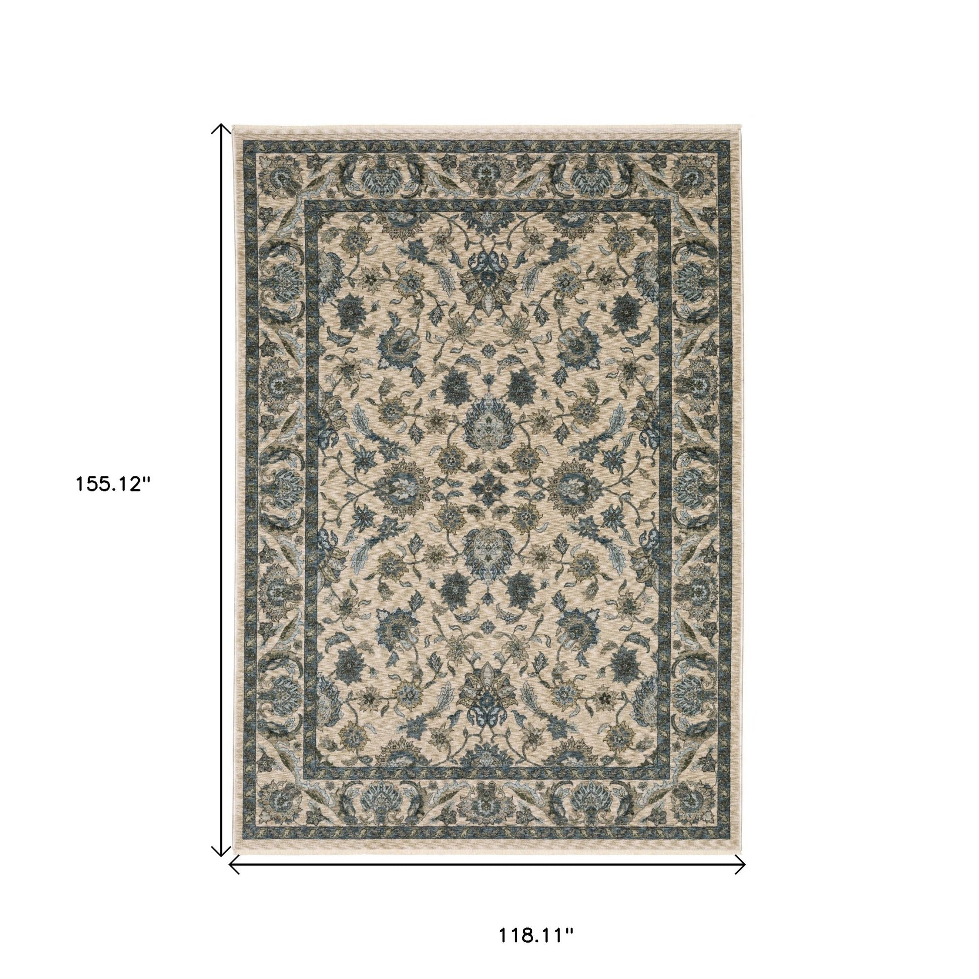 10' X 13' Beige And Blue Oriental Area Rug With Fringe