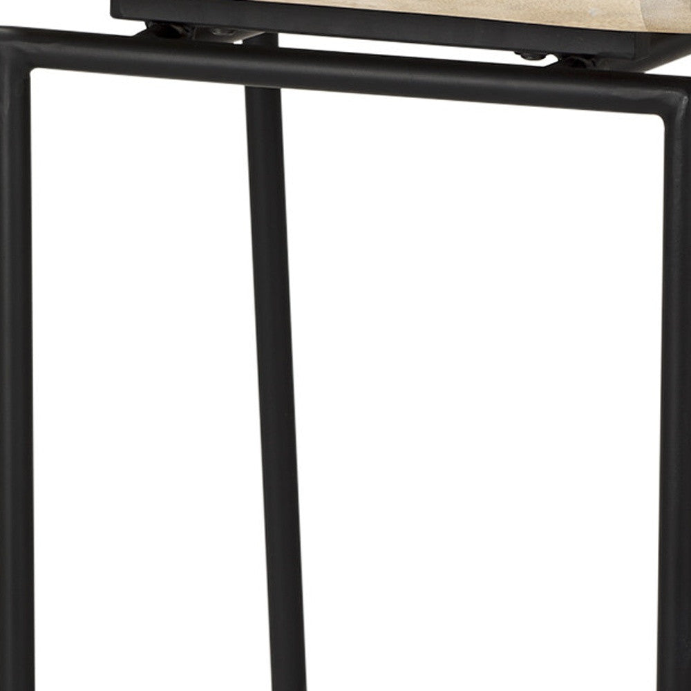 31" Natural and Black Solid Wood and Metal Low Back Bar Height Bar Chair
