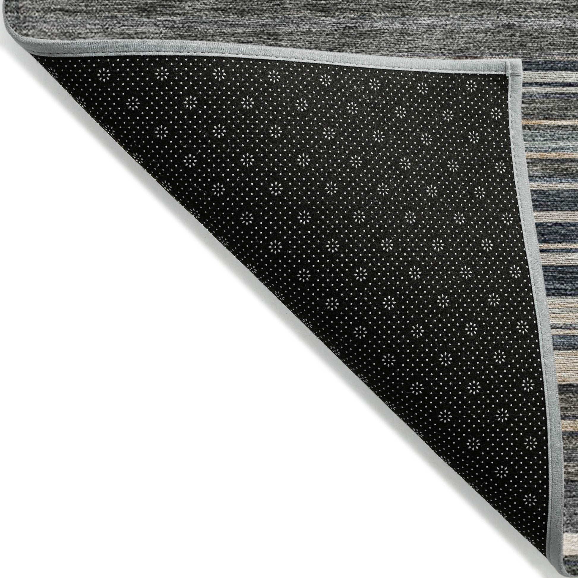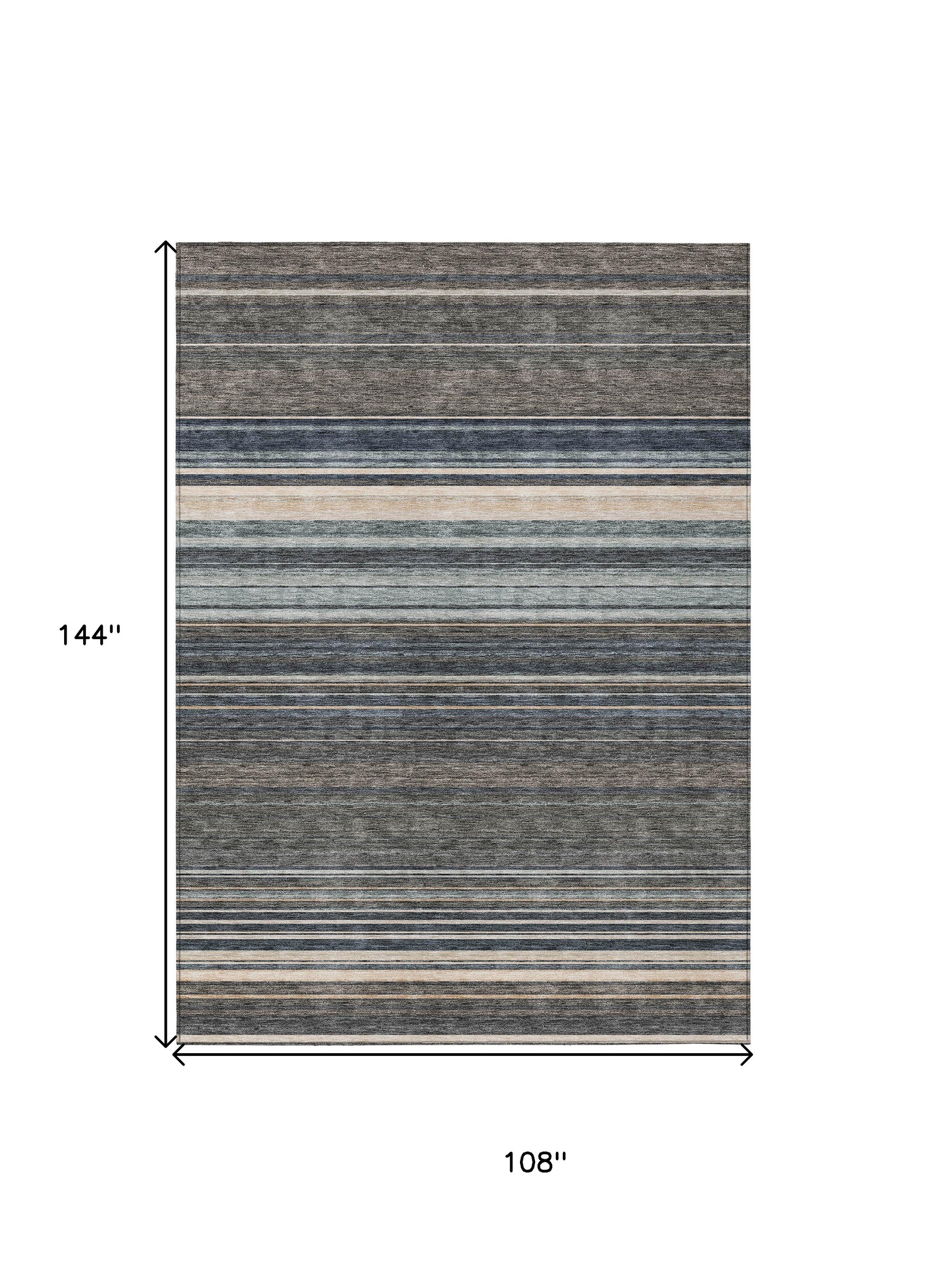 9' X 12' Taupe Beige And Pewter Striped Washable Indoor Outdoor Area Rug